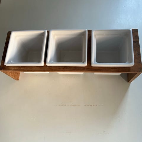 Længde 51 cm - aldrig brugt, men blev sat udenfor i frost vejr og det gav en hår tyk revne i den ene skål - ses på foto, hvor man skal lede grundigt for at finde