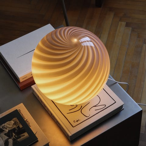 Ny Murano Candy bordlampe med rav orange swirl. Mundblæst glas i rund form. E27 fatning samt base med overflade i børstet messing. Den perfekte størrelse til dit natbord, indbygget reol eller vindueskarm. Håndlavet i Italien. D:30 cm Vægt ca. 3 kg. Se alle Murano Candy lamper her