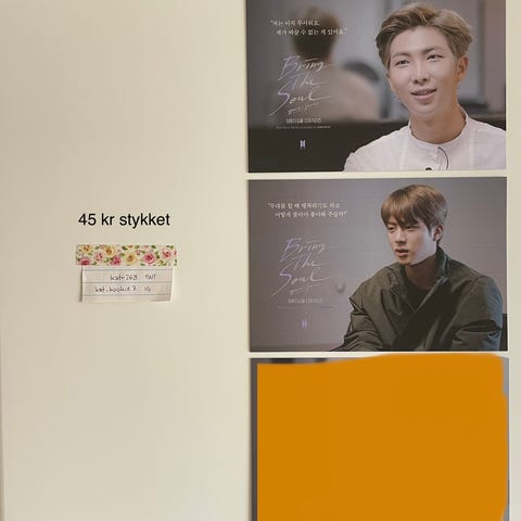 Sælger disse to fotokort af Jhope/Hoseok og RM/Namjoon. De er stadig i original indpakning og har ingen ridser eller skrammer. Prisen er per. styk og kan købes enkeltvis.