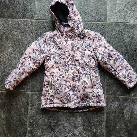 Blomstret vinterjakke. Passer til 6-8 årige. Fejler intet