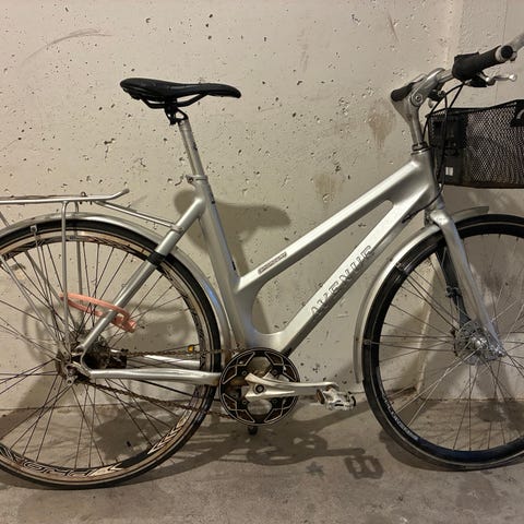 Rigtig lækker damecykel med cykelkurv.