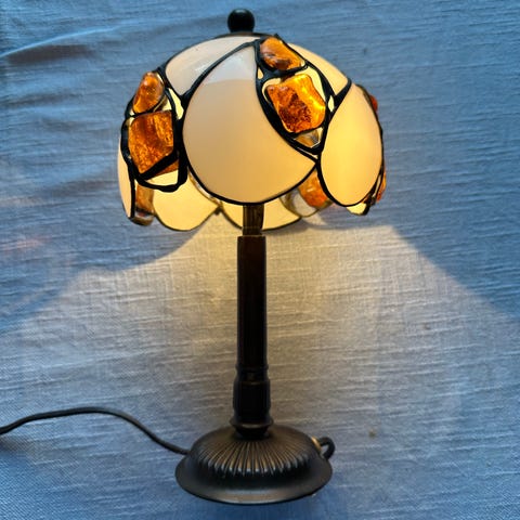 Tiffany look a like lampe i flot lyserødt / hvidt meleret glas.