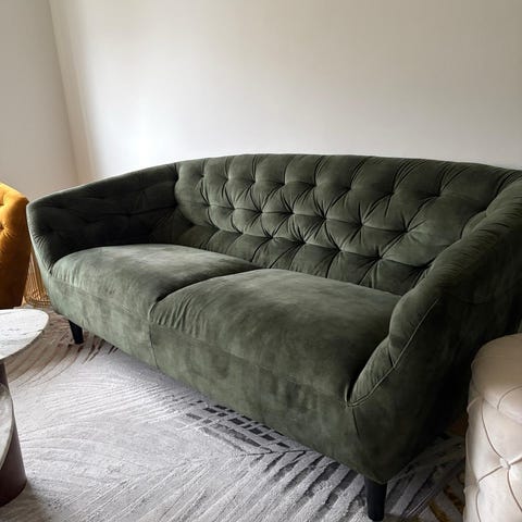 2. Ria Sofa 3 pers. Velholdt, men med bule i den ene side. (Fjeder har forskubbet sig.) Kr. 300,-