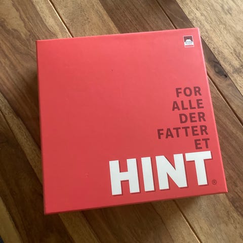 Det røde HINT brætspil med spilleplade, kort og spillebrikker. I det røde HINT vælger du et kort i en af de fire kategorier, som fortæller dig, om du skal synge, mime, tegne eller tale for dine medspillere. Spillet går ud på at give hints for at få holdkammerater til at gætte ord eller begreber. Dine medspillere skal gætte flest mulige ord indenfor 90 sekunder. Kræver 4 spillere minimum. Spilletid er 45 - 60 minutter.