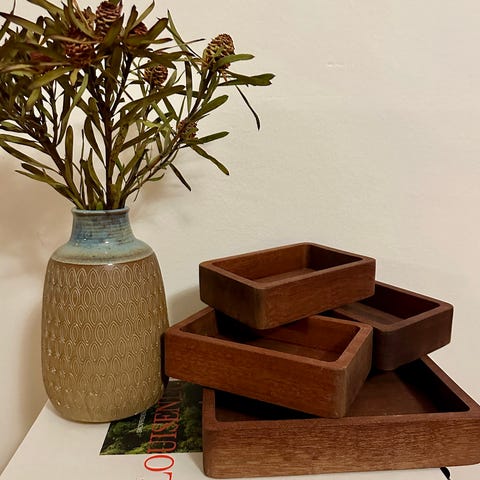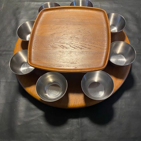 Smuk platmenage i teak fra 60-70’erne i rigtig flot stand L18,5cm x B15,5cm mp 450kr afhentes i 8570 Trustrup eller sendes for 45kr