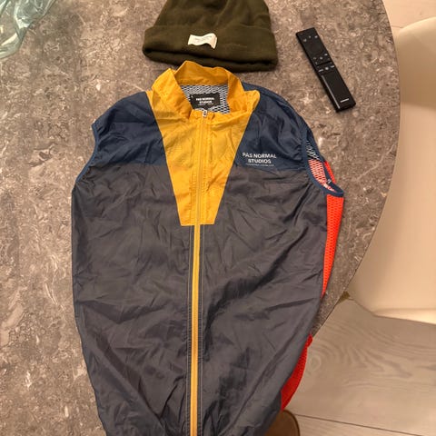 Vandtæt regnvest fra Pas Normal Studios i gul, der kan pakkes helt lille og ligge i baglommen.