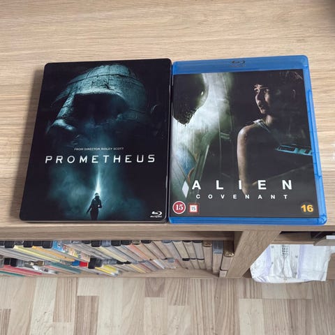 Samling af Blu-ray-film bestående af Prometheus, Alien, Mummy, Independence Day og Batman Collection. Filmene er i Blu-ray-format og indeholder forskellige genrer og titler.