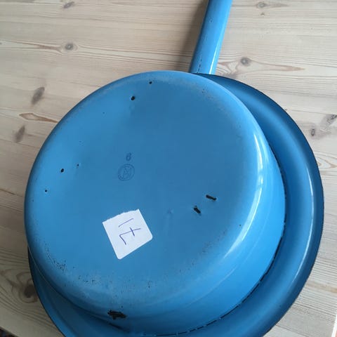 Kasserolle med ring. Knap 25 cm i diameter 12,5 cm høj. Stemplet