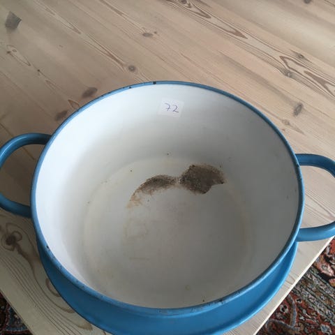 Kasserolle knap 21 cm i diameter 1q,5 cm høj.Stemplet