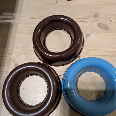 3 Randforme og 1 Springform, samt et afdrypningsnet, gryderne er solgt.
