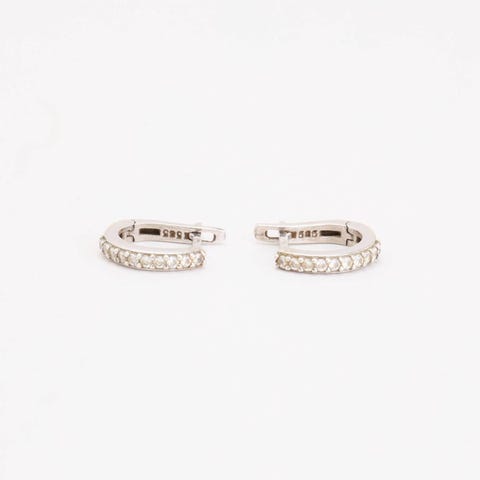 Huggies i 14K guld og hvidguld med en zirkonia, 1.8 cm,-Guld