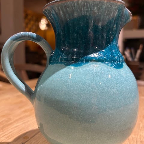 Tilbage i slut firserne og start halvfemserne brugte mange restaurenter stadig disse kander til vand og vin, som blev holdt dejligt køligt på grund af den stille fordampning. Kanderne er flot hånddrejet og påført blå glasur. Rigtig Græsk.