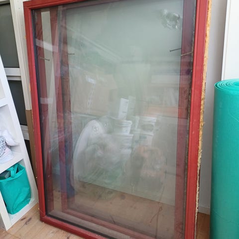 Solidt vindue som er velegnet til udhus eller skur. Mål: 58x63 cm. udvendig rammemål. Fast vindue, som ikke kan åbnes. Med enkelt mat glas. Fin lysindfald uden at man kan se ind. Vinduet har været isat i en årrække, så derfor er det billigt. Se foto 7940-41.