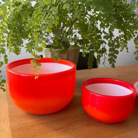 Glas, Glas kande, Holmegaard Palet, Fin lille rødorange flødekande i serien Palet fra Holmegaard designet af Michael Bank. Dia: 6 cm, H: 6,5 cm. Fejlfri. Kan hentes i Kbh / Rådhuspladsen eller i Odense eller sendes gerne.