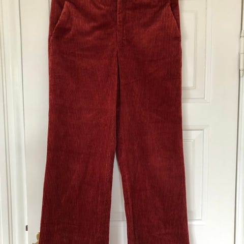 Fløjlsbukser med lige ben, bæltestropper og kantbåndslommer.