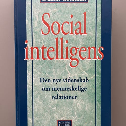 Daniel Goleman Social intelligens bog. Indeholder viden om menneskelige relationer og social intelligens. Bogen dækker emner som forståelse af sociale signaler, empati og sociale færdigheder. Teksten er på dansk.