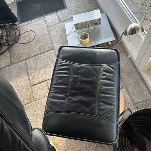 Bemærk at foden på stol og skammel ikke er den samme, men samme læder og kvalitet.