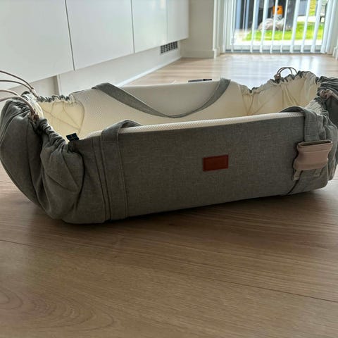 Najell SleepCarrier 2 babynest i grå. Fuldt funktionsdygtig og rimelig pæn. Fra røg og dyrefrit hjem.