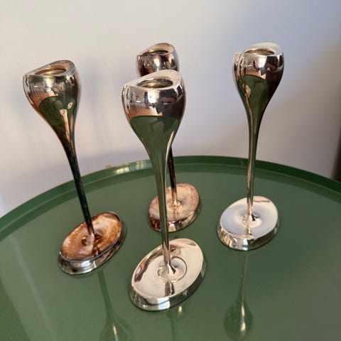 2 sølvplet kløverstager sælges til små lys.