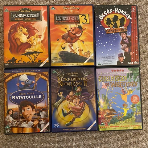 Samling af diverse animationsfilm på DVD med forskellige titler og genrer. Indeholder film som 'Biler', 'Lorax', 'Smølferne', 'Asterix' med flere. Velegnet til børn og familier, der ønsker underholdning med animerede historier.