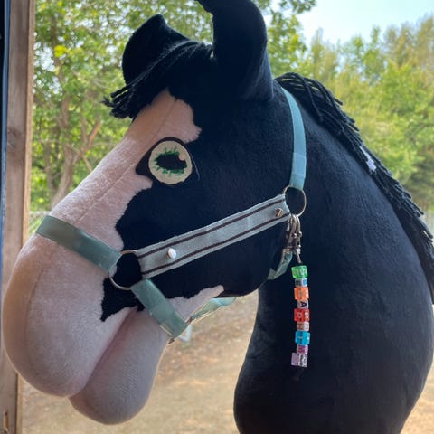 Håndsyet hobby horse sælges. Der følger en del udstyr med, som grime, træktorv og dækken. Den er brugt men i rigtig fin stand.