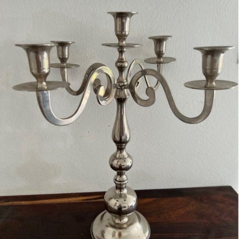 Menu lysestage i krom med fire ben. Lysestagen har et moderne og minimalistisk udseende. Materialet er krom, som giver en blank og reflekterende overflade.