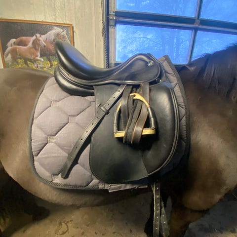 Super fin dressursadel 16,5”, bom 32. Sælges da jeg ikke får den brugt. Jeg købte den fra ny og den er blevet brugt meget lidt.