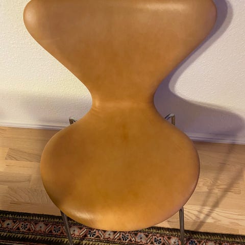 Jeg sælger mine syverstole i Cognac med smuk patina.