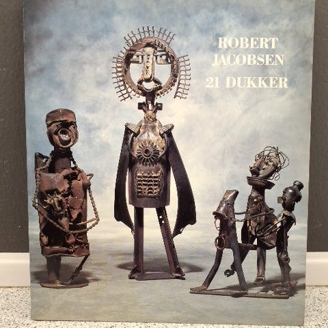 Katalog om dukkerne, som Robert Jacobsen har lavet i metal. Kataloget er udgivet af Statens Museum for Kunst i 1980 og SIGNERET.