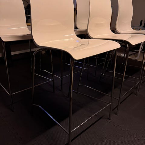 Kvalitetsstole i formpresset bøgetræ og kraftigt stålrør – lavet til professionelt brug.
