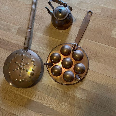 Køkkenudstyr, Kobber og smedejern, 120 år gl.