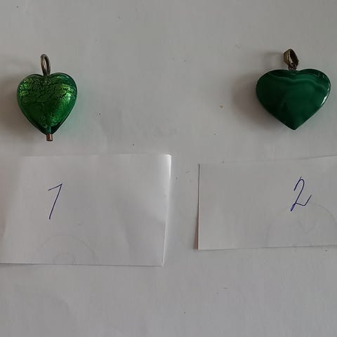 Hjerte i malakit på 2 cm til 30 kr