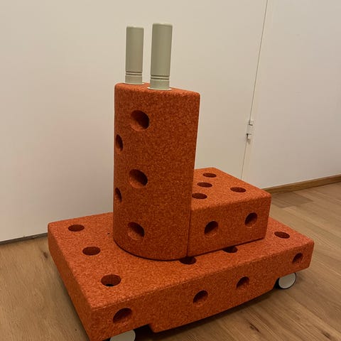 Der medfølger en del ekstra af de grønne pinde, samt en 5 pak med raslepinde.