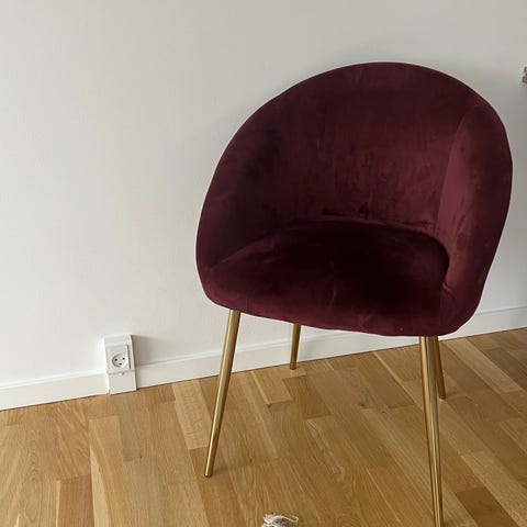 Guld ben og sort velour, lækker lounge stol. Ingen slid eller huller, fra røgfrit hjem.