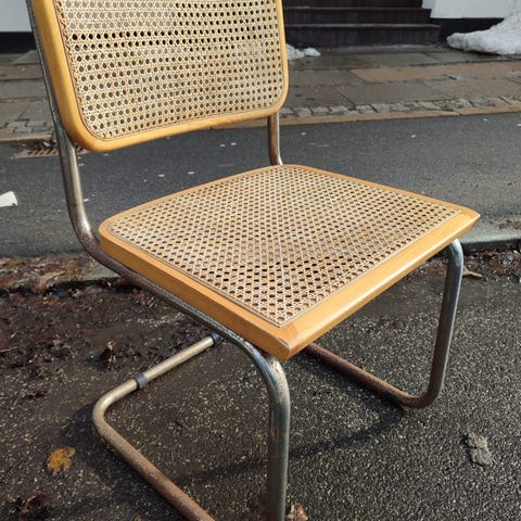 Fine Frisvinger stole med fransk flet i lakeret træ og forkromet stålstel 🤍