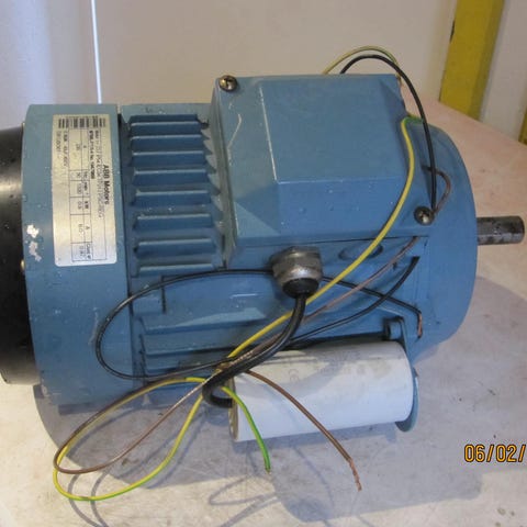 ABB Motors med gennemgående aksel. MT90L-F115-4. V 230 . Hz 50. r/min 1320. kW 0,9. A 6,0. Aksel ø. 14 mm yderst (længst fra motoren) og 15mm tættest på motoren, i den ene ende og 19 mm i den anden ende. Diagonal mål på monteringshuller ca. 114 mm