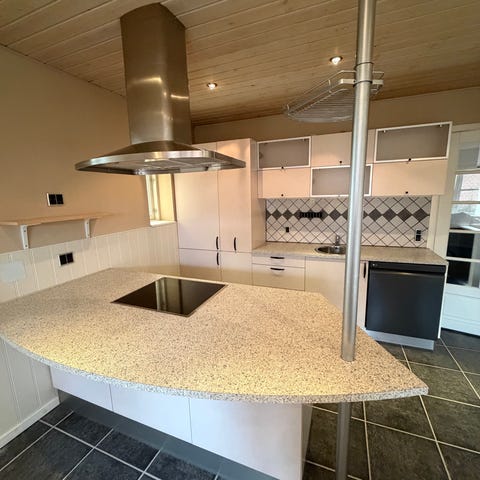 Der medfølger alle hvidevarer i køkkenet (Miele ovn, Miele opvaskemaskine, Vestfrost køle/frys skab, induktionskogeplade fra Point)