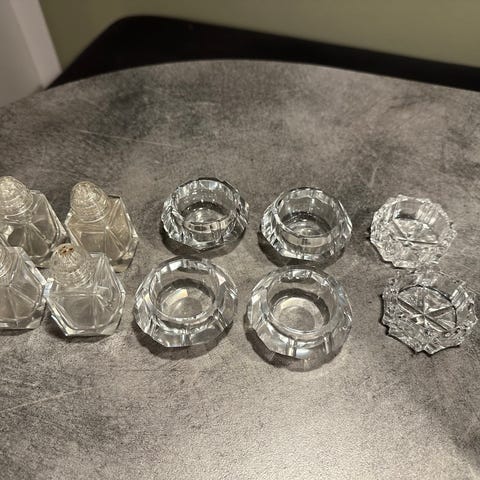 Lavet af glas med top i sølv med mærket 925s for sterlingsølv.