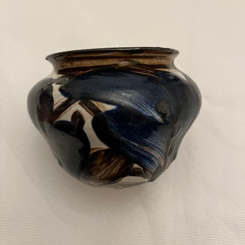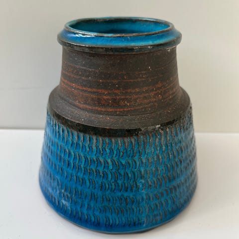 Flot, gammel og sjælden trompetformet Kähler vase sælges! I flotte beige og mørkeblå farver. Jeg vil tro, at vasen er fra 1920’erne. Ingen revner eller afslag.
