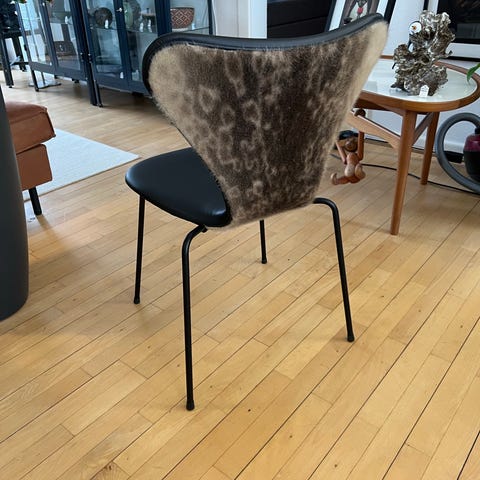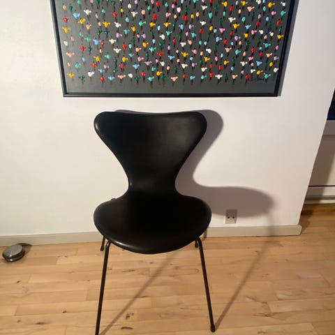 Sælger 2 styk smukke og tidløse designklassiker: en fuldpolstret Arne Jacobsen model 3107, også kendt som Syveren, produceret af Fritz Hansen.