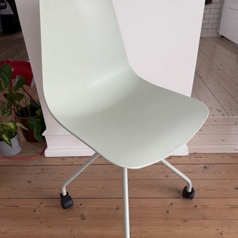 Lysegrøn kontorstol fra Søstrene Grene. Stolen har sorte hjul og den er god som ny