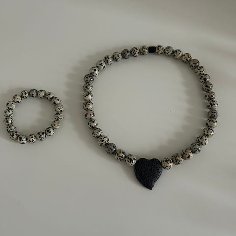 Halskæde og armbånd i 10 mm lerperler med blomster