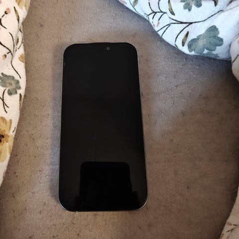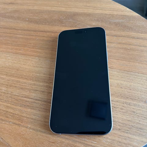 Apple iPhone 16 mobiltelefon med 256 GB intern hukommelse i farven hvid. Telefonen har et dobbeltkamera på bagsiden og en flad sideprofil med knapper til lydstyrke og tænd/sluk. Den er købt i USA, så man skal benytte sig af e-sim. Batteri - 91%