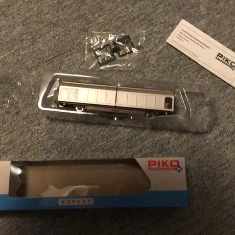 Piko postbureau jernbanevogne 95965 modeltog vogne i rød farve. 2 vogne og tilbehør til modeltog. Lang model. Original emballage. Egnet til brug i modeljernbaneopstillinger. Kan sendes på købers regning, eller afhentes i postnummer 4070 Sjælland. Modtager kontant og mobilpay. Pris pr stk. 300 kr. begge for 575 kr.