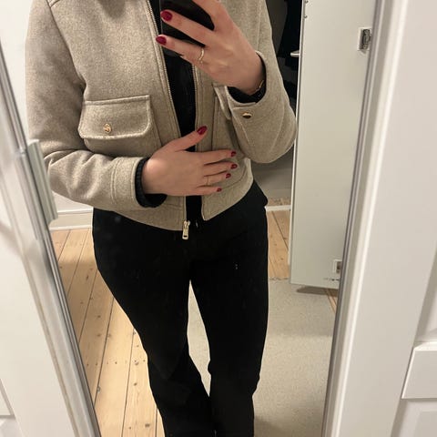 Kort blazer med guldpailletter. Ingen revers, ingen lukning foran. Fuldt foret.