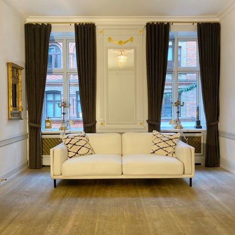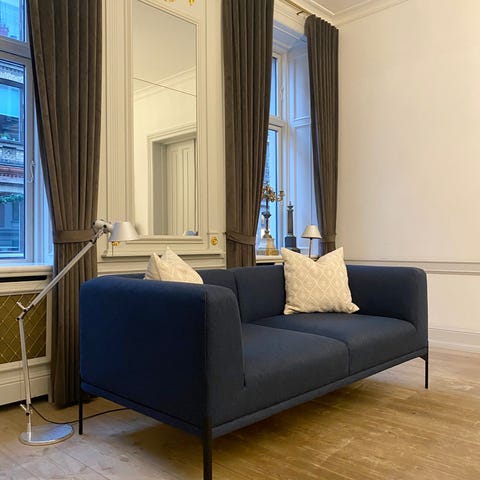 Virkelig elegant sofa med det rette "hotel-lounge look", der passer perfekt til f.eks. både den store elegante og stilrene funkis-villa i Hellerup og den imponerende 7-værelses Østerbro-lejlighed med både stuk og høje paneler.