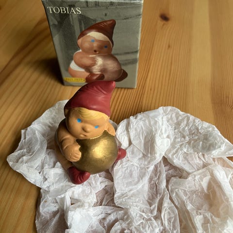 Julepynt / Klarborg Tanya nisse i keramik. Nissepige der sidder på en snebold