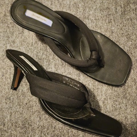 brugt et par gange, se slidtage på siden af skoene hvor de holdes oppe. De fremstår flotte og brugen ses ikke rigtigt når skoen er i brug