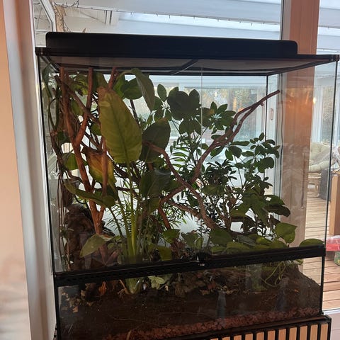 Mål på terrarie: længde: 120,5 cm. Højde: 108 cm. Dybde 50,5 cm.