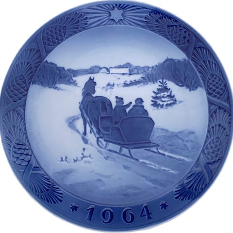 Den klassiske juleplatte fra Royal Copenhagen fra 1971 - Hare i vinterlandskab.